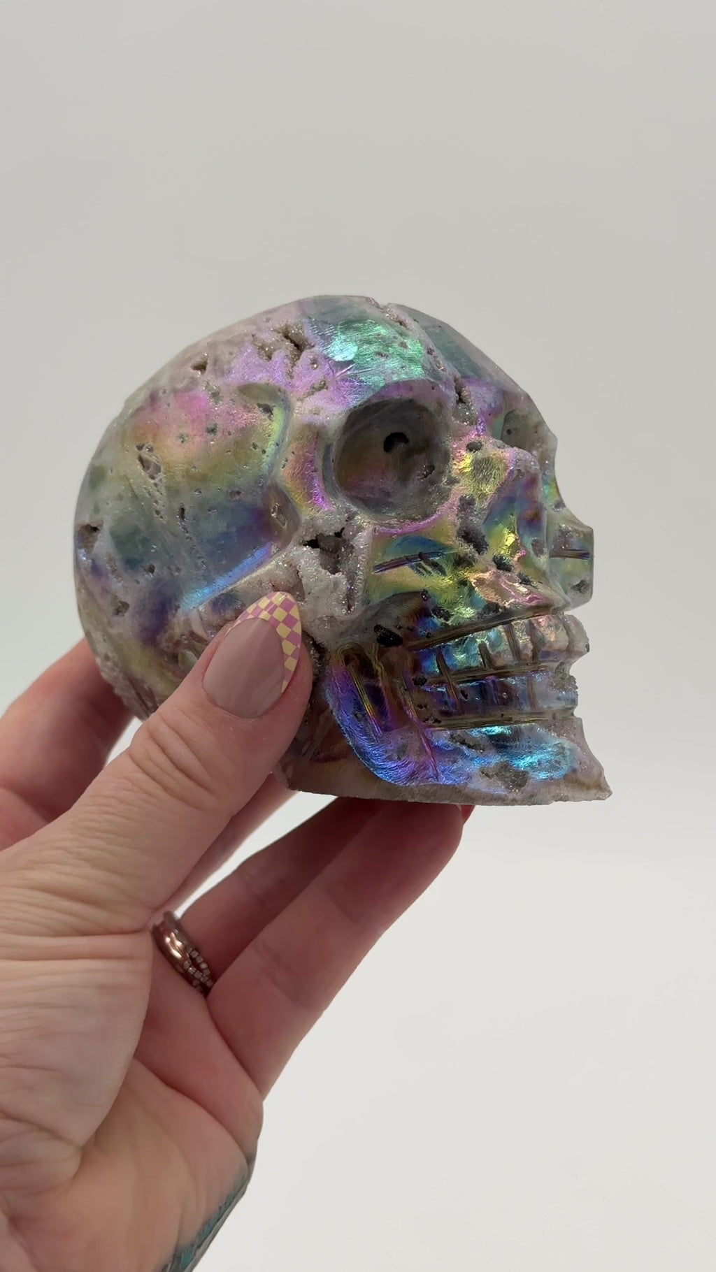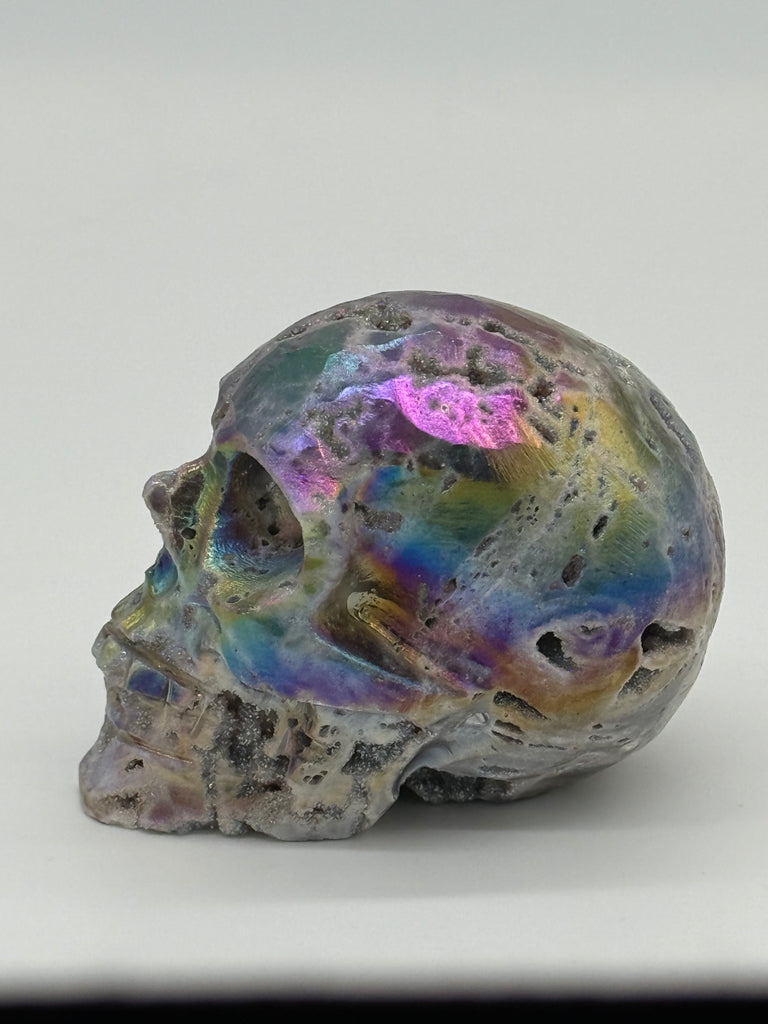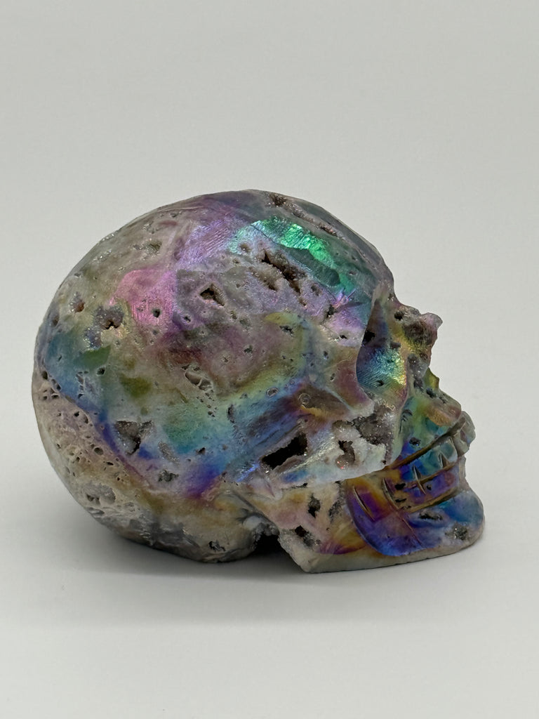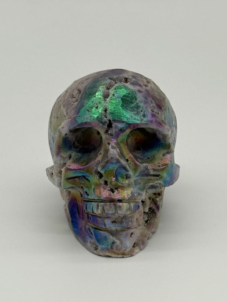These Aura Druzy Sphalerite skulls are bold, magnetic, and unapologetically powerful.